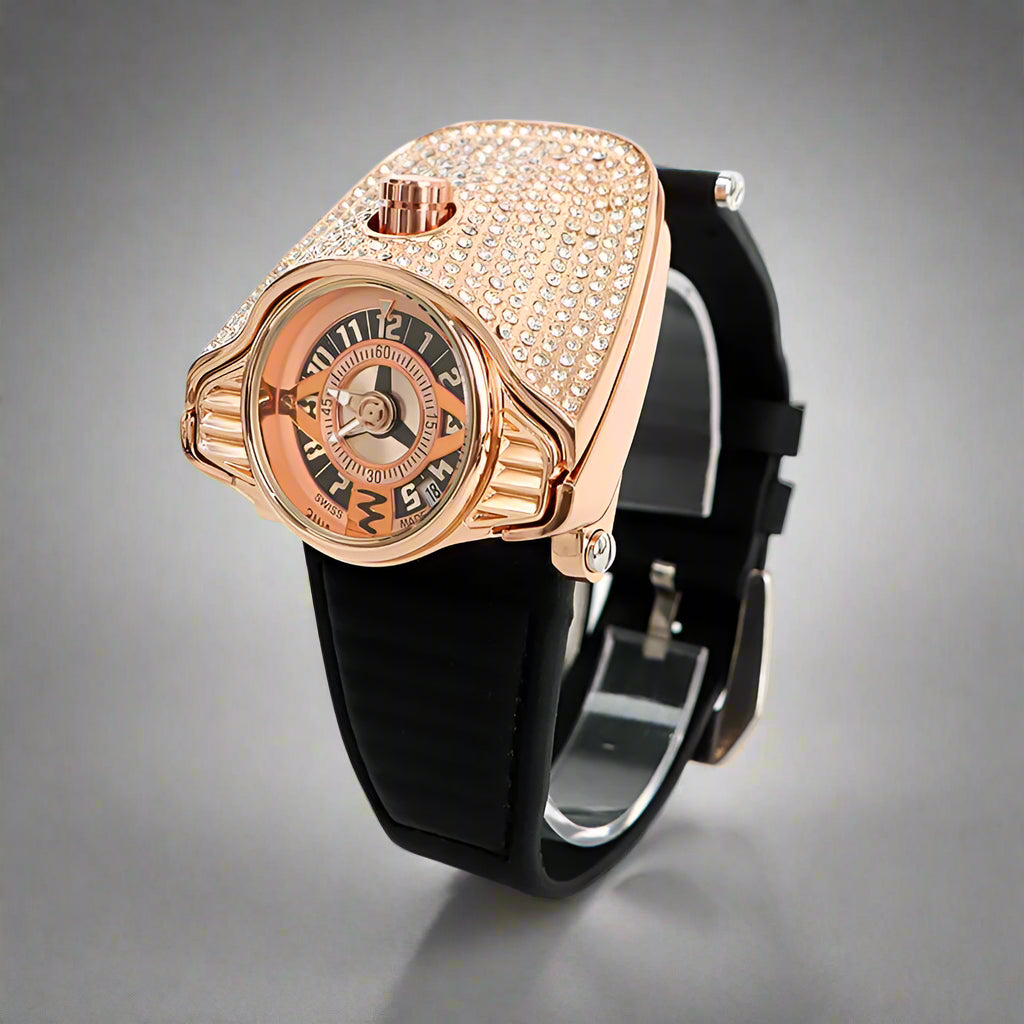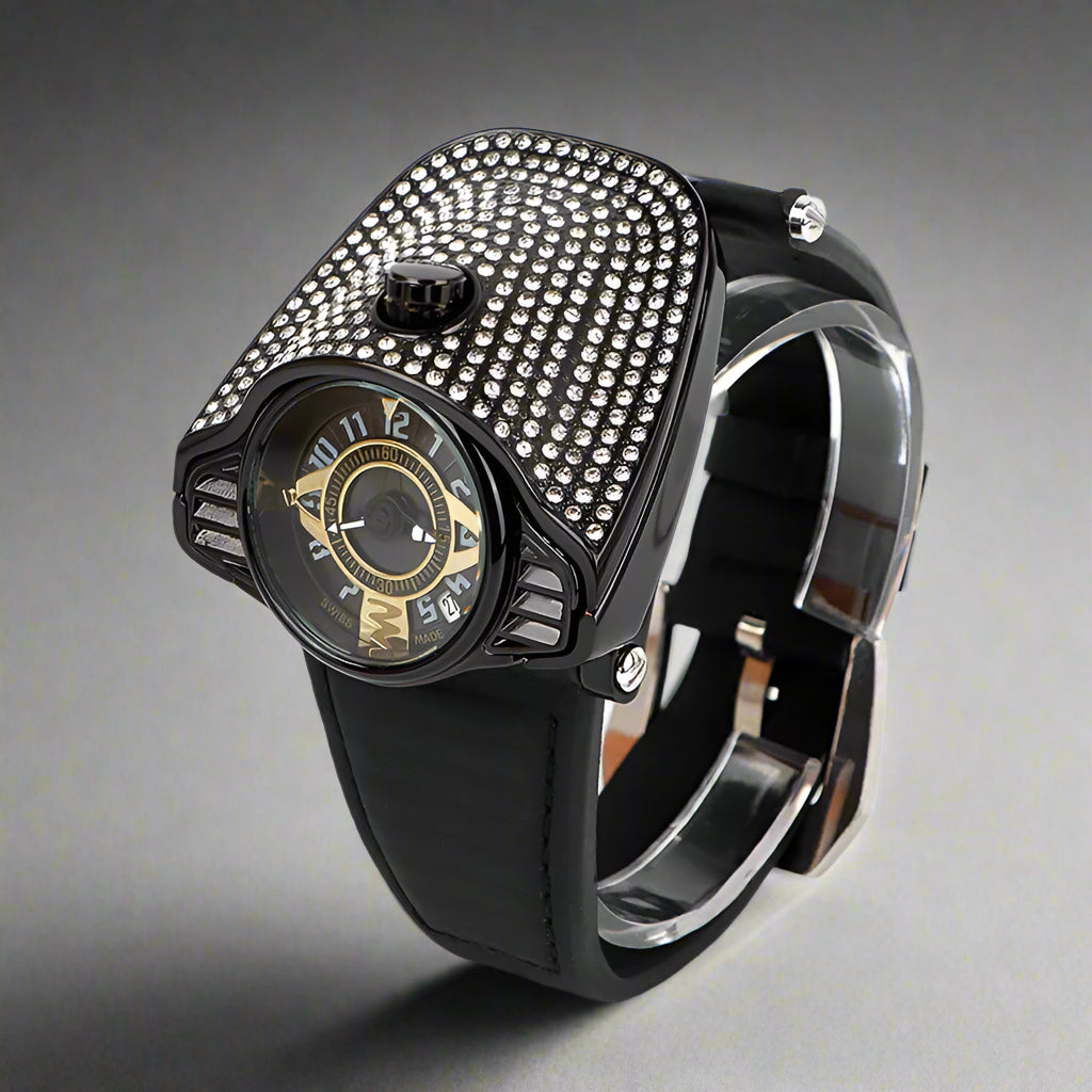 Where watch design meets modern art - this head-turning timepiece creates instant impact with its diamond-covered face and sculptural case design. The bold aesthetic and technical precision deliver the perfect balance of showstopping style and everyday function.
