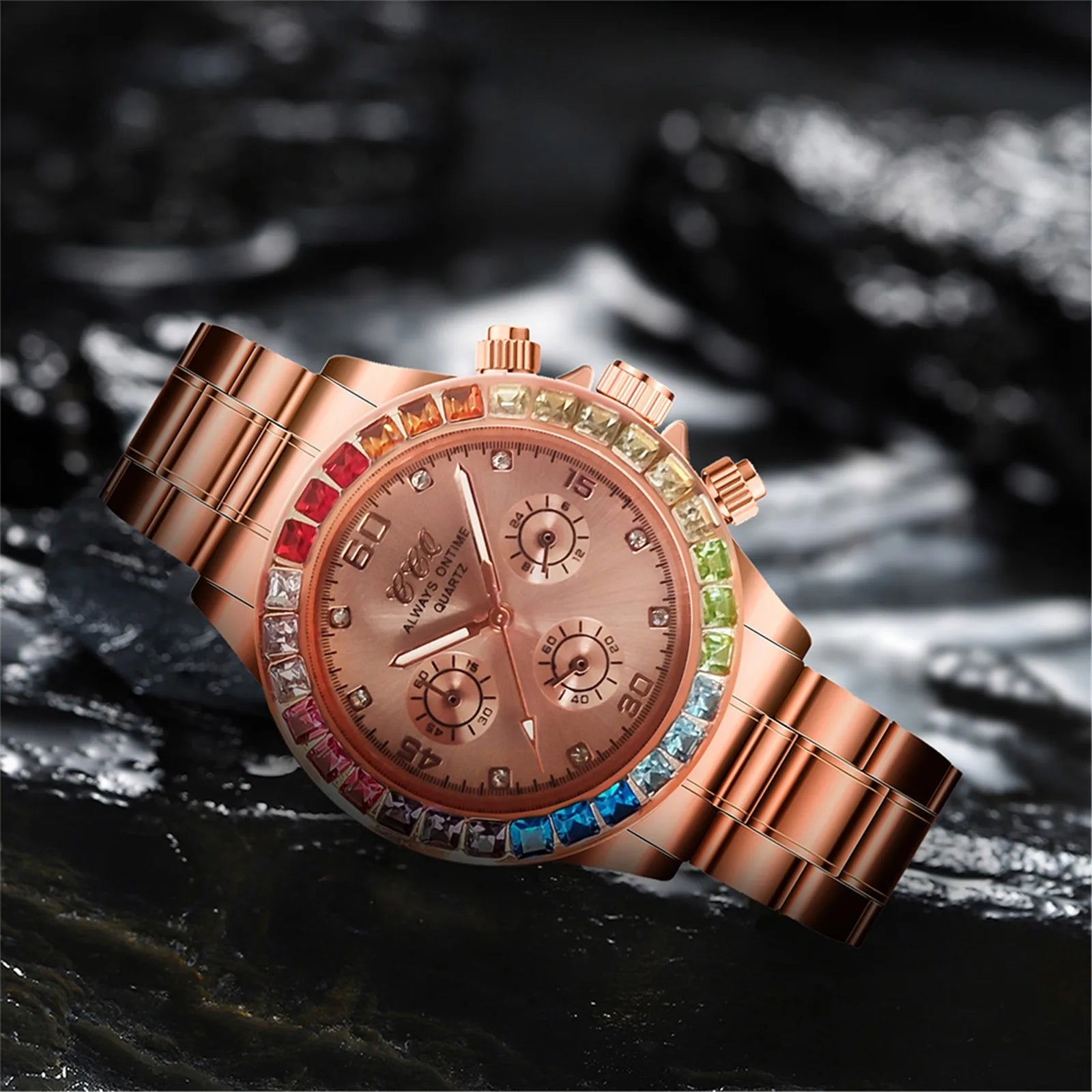 Crafted with show-stopping rainbow gemstones & warm rose gold that catches light like liquid fire, this piece makes a statement that's impossible to ignore.