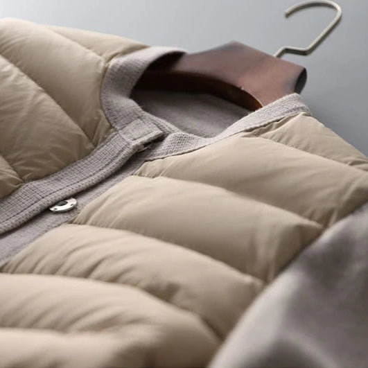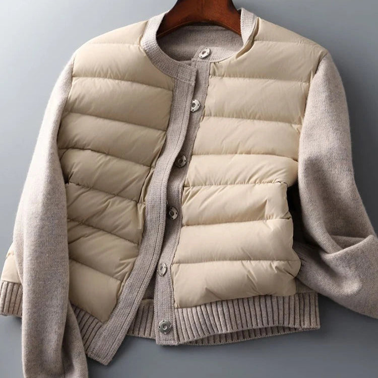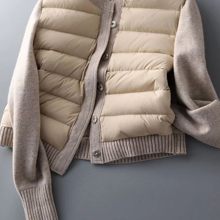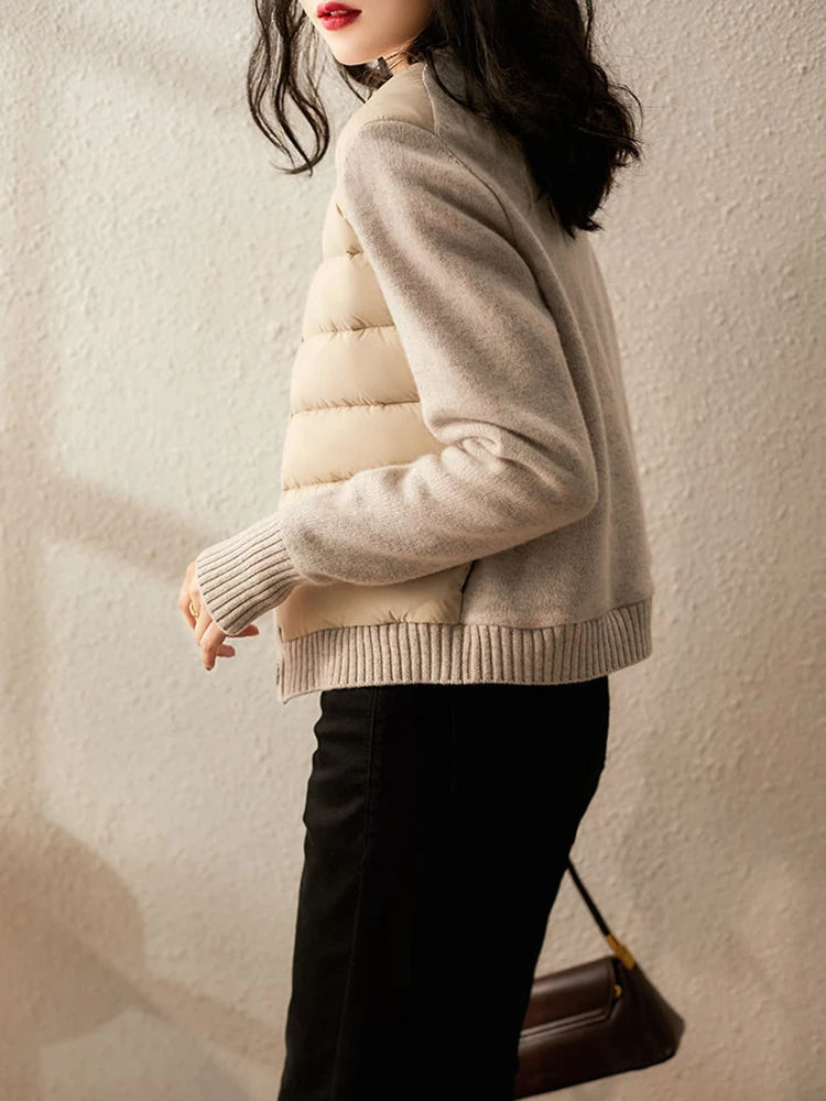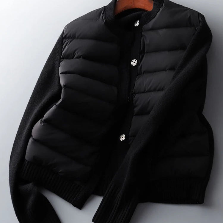 Forget choosing between your favorite sweater and go-to puffer - this piece brings you both. The warm quilted front meets super-soft knit sleeves for a look that works everywhere from coffee runs to dinner dates.