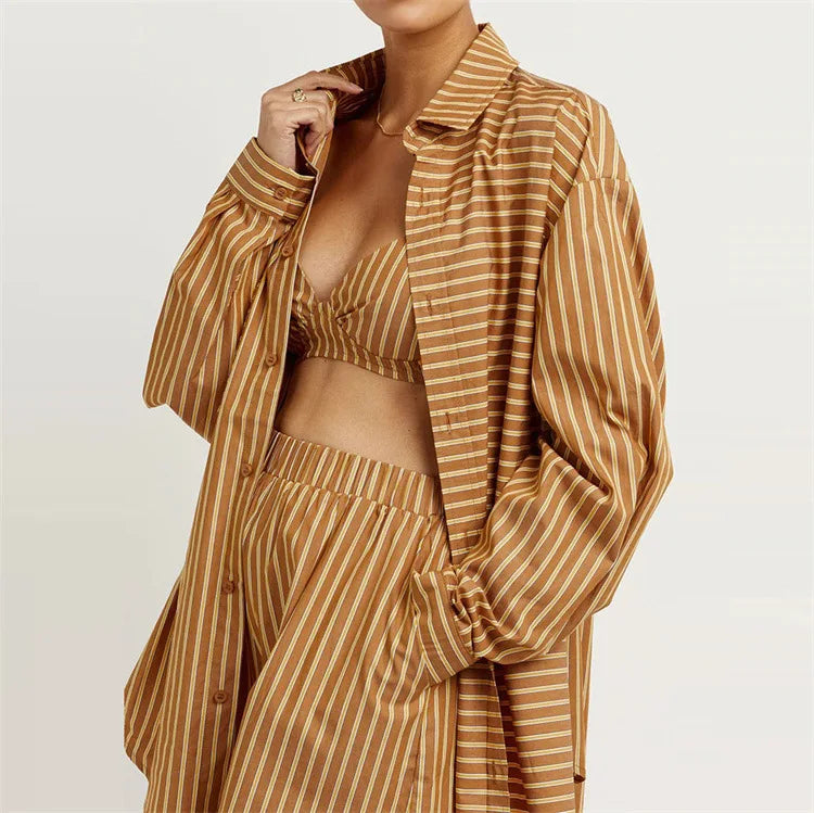 Effortless layering that still looks intentional. Whether it’s a morning coffee or rooftop drinks, this 3-piece wraps you in golden hour confidence.