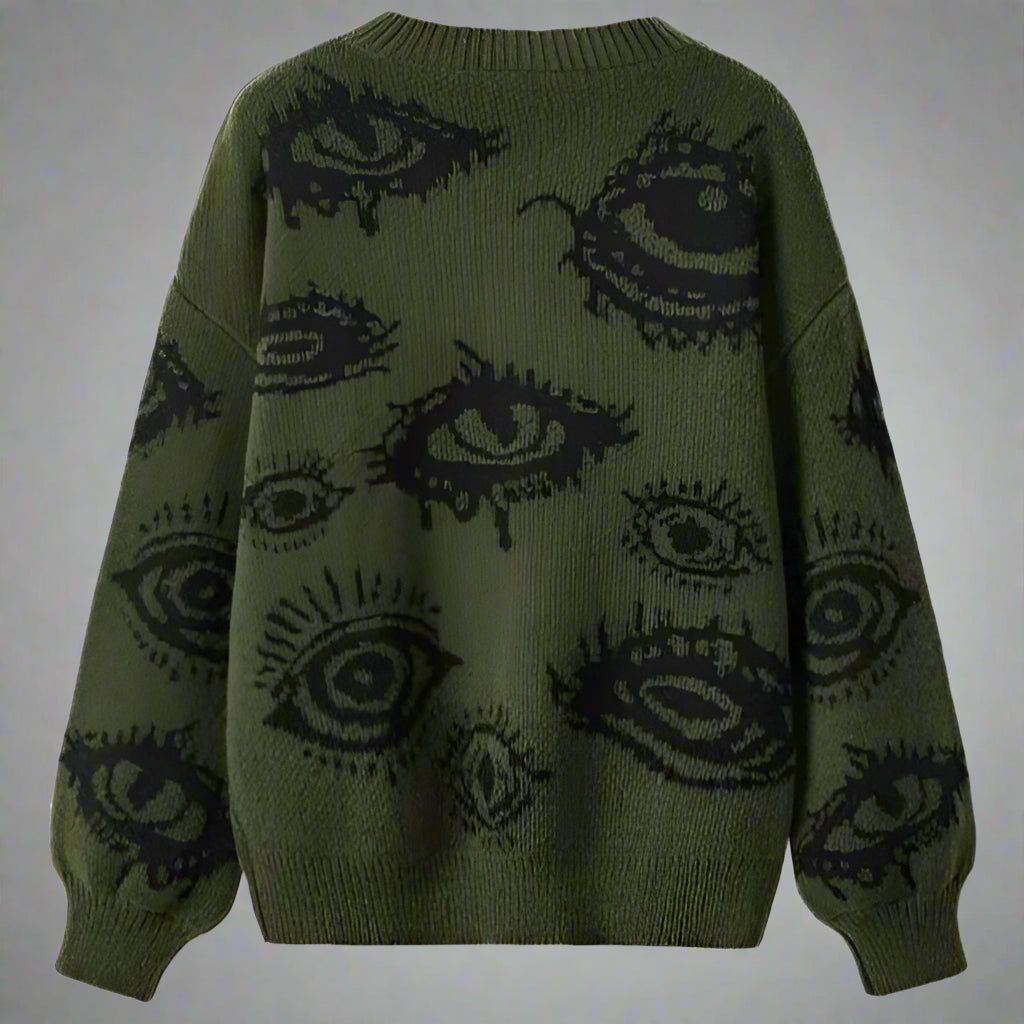 A pullover that turns heads & sparks conversations. Crafted from a luxurious wool blend, it wraps you in warmth while the hypnotic eye design keeps all eyes on you.